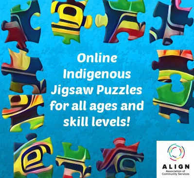 - ALIGN’S Indigenous Online Jigsaw PuzzlesVisit Online Jigsaw Puzzles- In recognition of National Indigenous Peoples Day on June 21st – ALIGN Association created these Indigenous online jigsaw puzzles to support foster/kinship caregivers of Indigenous children and youth with activities that further their awareness of culture and traditions. - The best thing about jigsaw puzzles is that they require you to slow down and look at all the details as you piece the whole picture together. In a fast moving world filled with photos and graphics this is an opportunity for children, youth and adults to relax and appreciate the details of the traditional regalia, food, animals, teepees, totem poles and more!
